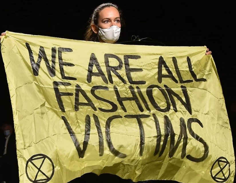 Η διαμαρτυρία είχε στόχο να καταγγείλει «τον αντίκτυπο της βιομηχανίας της μόδας στο περιβάλλον και την κοινωνία», εξήγησε ο εκπρόσωπος Τύπου της οργάνωσης στη Γαλλία.