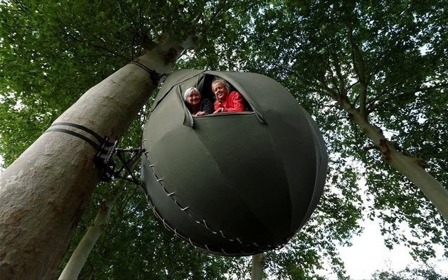 σκηνές που κρέμονται από τα δέντρα αποτελούν ιδέα του Ολλανδού καλλιτέχνη Ντρε Βαπενάαρ, ενώ λειτουργούν ως καλλιτεχνική εγκατάσταση και δεν χρησιμοποιούνται μαζικά, σύμφωνα με τον εμπνευστή τους.