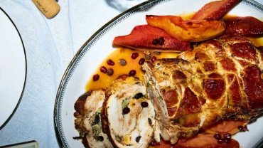 Ένα χοιρινό ρολό ονειρεμένο, με κυδώνια, μυρωδικά και τη γλύκα της σταφίδας....