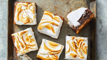 Το γαρνίρισμα με αφράτα μπράουνις με αφράτη ψημένη μαρέγκα κάνει ένα αγαπημένο...