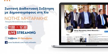 Συνέντευξη τύπου στα ΜΜΕ του νησιού μας δίνει το Σάββατο στις 11.00 π.μ. στο Ξενοδοχείο Χανδρής ο υπουργός Μετανάστευσης Νότης Μηταράκης.