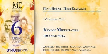 1922-2022 Πέντε εκδηλώσεις στο 6ο Φεστιβάλ της "Μούσα Ελληνική" με άξονα το τρίπτυχο Πρόσωπα - Μνήμες - Νόστος, που με αφορμή την επέτειο των 100...