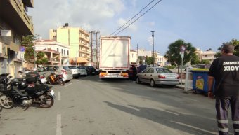 Την ώρα αιχμής στο κέντρο της πόλης, λίγο μετά τις 9 το πρωί, που ανοίγει η αγορά, εργαζόμενοι πηγαίνουν στις δουλειές κ.ο.κ. παρκαρισμένα οχήματα στη στροφή της οδού Μαρτύρων, μετά το Εργατικό Κέντρο Χίου, στάθηκαν εμπόδιο για να περάσει μια νταλίκα με αποτέλεσμα να κλείσει η κίνηση από την οδό Δημοκρατίας στην Μαρτύρων και οι οδηγοί να κάνουν το γύρο του κήπου ψάχνοντας άλλη διέξοδο.