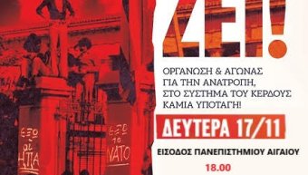 Τιμάμε το Πολυτεχνείο επαγρυπνώντας απέναντι στους σύγχρονους υμνητές της χούντας, σε όσους χύνουν το φασιστικό τους δηλητήριο και αποκαλύπτουμε το ρόλο τους για να στηριχθεί το σύστημα της εκμετάλλευσης και της καταπίεσης. Δίνουμε μαχητική απάντηση στον εντεινόμενο αυταρχισμό και την καταστολή της κυβέρνησης. Κανένας νόμος, κανένα διάταγμα δεν θα σταματήσει την πάλη ενάντια στους εκμεταλλευτές του μόχθου μας και τους μηχανισμούς που τους υπηρετούν, τις κυβερνήσεις, την Ε. Ε. και το ΝΑΤΟ. Δε θα τους αφήσουμε να μας βάλουν στο γύψο.