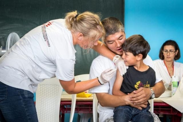 Στο πλαίσιο της προσπάθειας να καλυφθούν βασικές ανάγκες υγείας των προσφύγων, των μεταναστών και άλλων ευάλωτων πληθυσμών, οι Γιατροί Χωρίς Σύνορα λειτουργούν από τον Σεπτέμβριο στην Αθήνα ένα Κέντρο Ημέρας. Το Κέντρο παρέχει φροντίδα ψυχικής υγείας, καθώς και φροντίδα σεξουαλικής και αναπαραγωγικής υγείας (προγεννητική, γυναικολογική, φροντίδα για εγκύους, μεταγεννητική φροντίδα, , υποστήριξη σε θύματα έμφυλης βίας κ.λπ.). Στις δραστηριότητες του Κέντρου Ημέρας εντάσσεται και ο εμβολιασμός παιδιών.