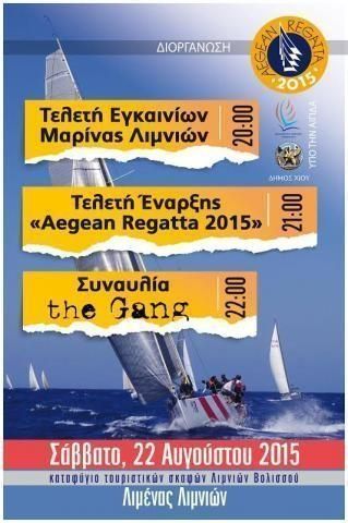 Το Σάββατο 22 Αυγούστου στις 20:00 θα πραγματοποιηθούν τα εγκαίνια της νέας μαρίνας, στη συνέχεια τη σκυτάλη παίρνει η οργανωτική επιτροπή της Aegean Regatta, ανοίγοντας και επίσημα την αυλαία της διοργάνωσης, ενώ στις 22:00 σειρά παίρνει το συγκρότημα the Gang, που θα κλείσει το πρόγραμμα εκδηλώσεων με μία ηχηρή συναυλία.