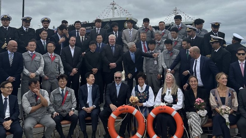 Θέλω να ευχαριστήσω όλους για την σπουδαία δουλειά που κάνατε. Είναι η δεύτερη φορά μέσα σε ένα χρόνο που βρισκόμαστε εδώ για να παραλάβουμε πλοία υψηλής τεχνολογίας. Είμαστε μεγάλοι υποστηρικτές της κορεατικής ναυπηγικής βιομηχανίας και της Κορέας.