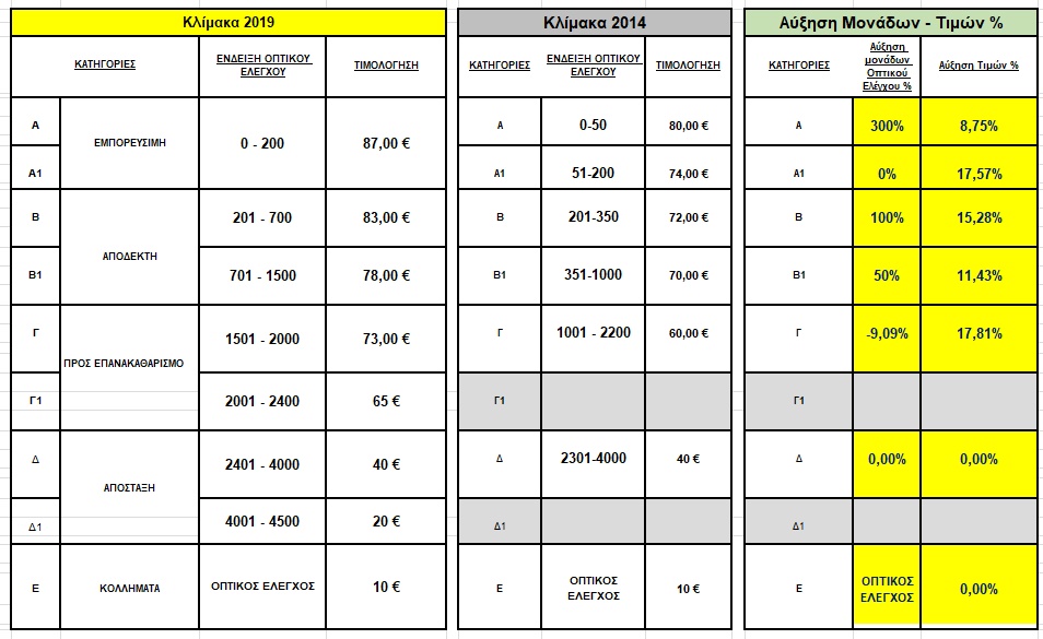 Παραθέτουμε στην gallery τον πίνακα με την ποσοστιαία μεταβολή τιμών της Μαστίχας, καθώς και την επίσης ποσοστιαία αύξηση της διεύρυνσης της βαθμίδας οπτικού ελέγχου για την τιμολόγηση του προϊόντος, που γνωστοποίησε ο κος Τούμπος, στον οποίο διαπιστώνεται η αύξηση στις τιμές του προϊόντος της τελευταίας 5ετίας, που ξεπερνούν σε κάποιες περιπτώσεις και το 17%!