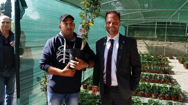 Με παρόντες τον Αντιπεριφερειάρχη Στ. Κάρμαντζη, του οποίου εξήραν όλοι τον κυρίαρχο ρόλο στην εξασφάλιση της δωρεάς, τον Δήμαρχο Χίου Μ. Βουρνού, εκπροσώπους των αρχών και κυρίως εκπροσώπους των 5 πληγέντων Κοινοτήτων από τις φωτιές του 2012 και του 2016, οι εκπρόσωποι της τράπεζας, είχαν κατ’ αρχήν τη δυνατότητα να ξεναγηθούν στα φυτώρια από τον Διευθυντή Ανάπτυξης της ΕΜΧ, Ηλία Σμυρνιούδη.