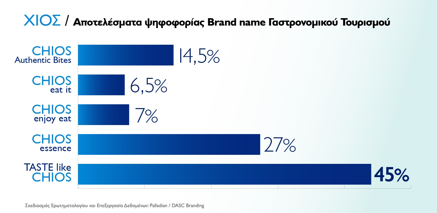 Οι 293 συμμετέχοντες είχαν να επιλέξουν ανάμεσα σε πέντε διαφορετικές προτάσεις ενώ υπήρχε η δυνατότητα μίας συμμετοχής μόνο στην ψηφοφορία, με μία μοναδική επιλογή. Επικρατέστερη επιλογή με 45% των ψήφων αναδείχθηκε το όνομα: Τaste like Chios