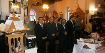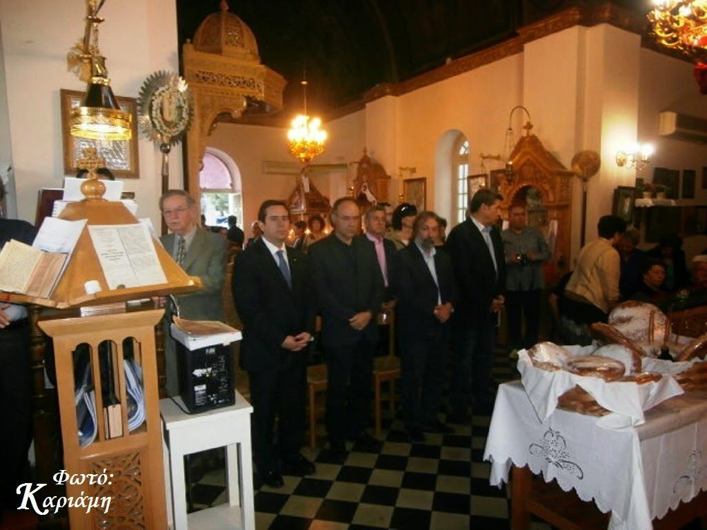 Οι πρ. Πρόεδροι κκ Τσικής και Τριπολίτης. Οι πρόεδρος της Ο.Χ.Σ.Α κ. Αργ. Κοκκινάκης Οι πρόεδροι των συλλόγων : ΝΑΥ.ΣΥ.ΚΟ – Χίων Ελευσίνας – Κουρουνίων – Λεπτοπόδων και Πυργίου. Επιφανείς επιστήμονες και οι κυρίες των γραμμάτων Πόπη Στεφανου Χαλκιά – Αγγελική Συρρή Στεφανίδου και Ευγενία Μουρατίδου Καλαγκιά. Διάφοροι τοπικοί και αθλητικοί σύλλογοι. Τυχερό το εκκλησίασμα. Απόλαυσε έναν κατανυκτικό εσπερινό.
