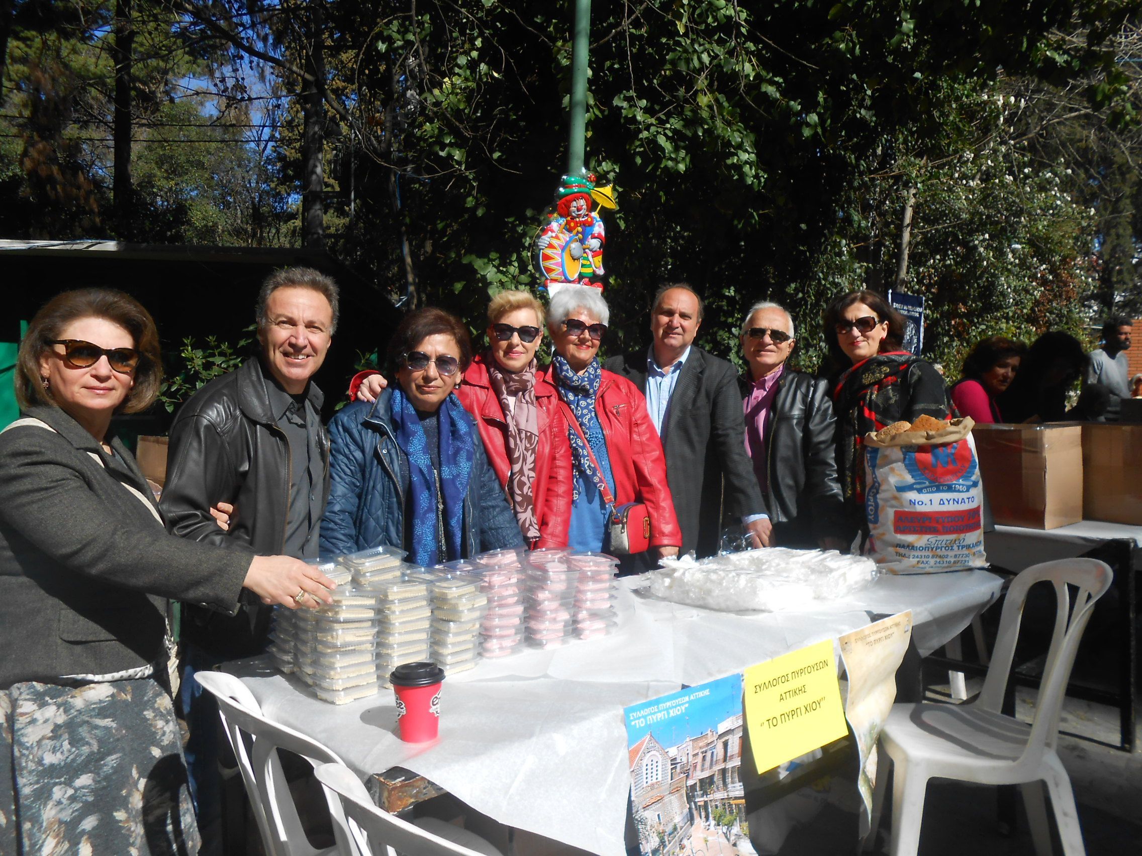 Ο ΣΥΛΛΟΓΟΣ ΠΥΡΓΟΥΣΩΝ ΑΤΤΙΚΗΣ «ΤΟ ΠΥΡΓΙ ΧΙΟΥ» συμμετείχε επίσης και φέτος, στα κούλουμα στο τουριστικό περίπτερο στο Δαφνί Χαϊδαρίου, όπου πλήθος κόσμου μαζεύτηκε και το έριξε έξω, χόρεψε με την παραδοσιακή ορχήστρα του συγκροτήματος και γεύτηκε τα νηστίσιμα εδέσματα ,και κρασιά προσφορά του Δήμου Χαϊδαρίου! Οι άνθρωποι του Συλλόγου μοίρασαν εκατοντάδες συσκευασίες εδεσμάτων! Φυσικά από τον πάγκο του Συλλόγου, δεν έλειψαν η σούμα, το χιώτικο ούζο, το λικέρ μαστίχας αλλά και οι χιώτικες τσίχλες ΕΛΜΑ!