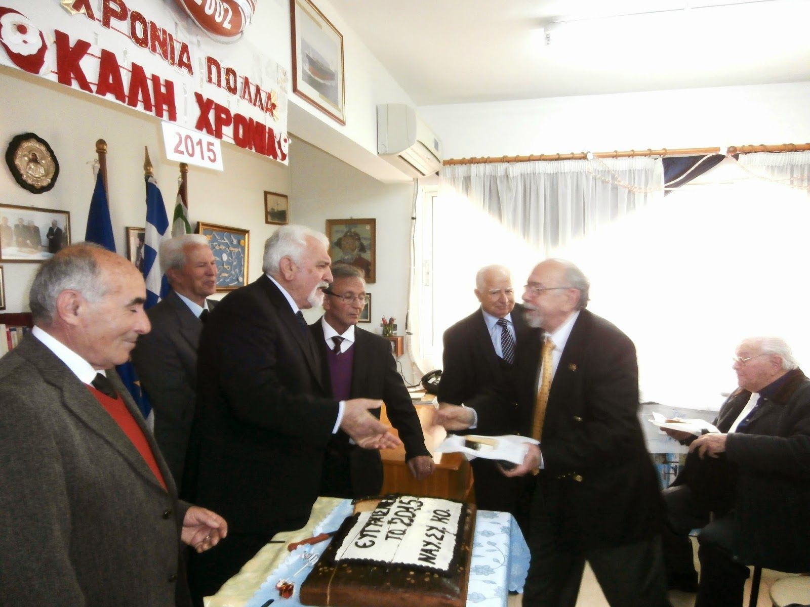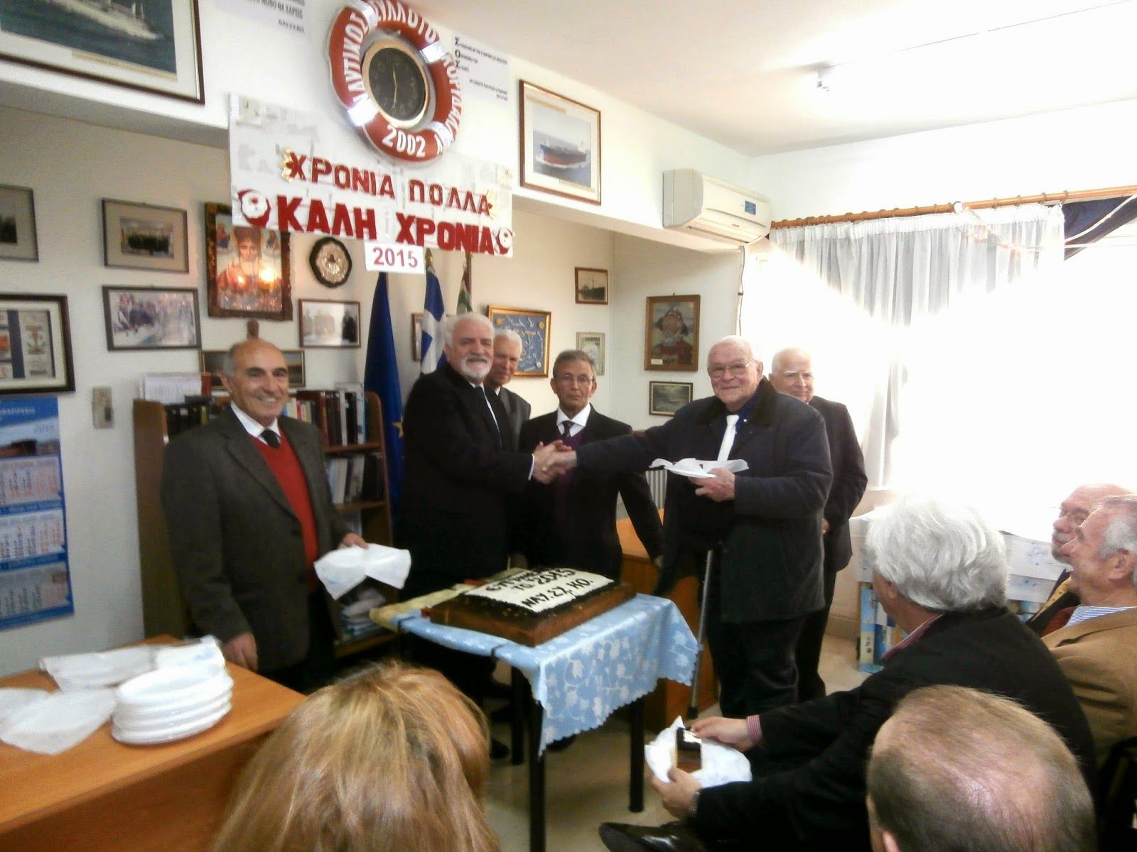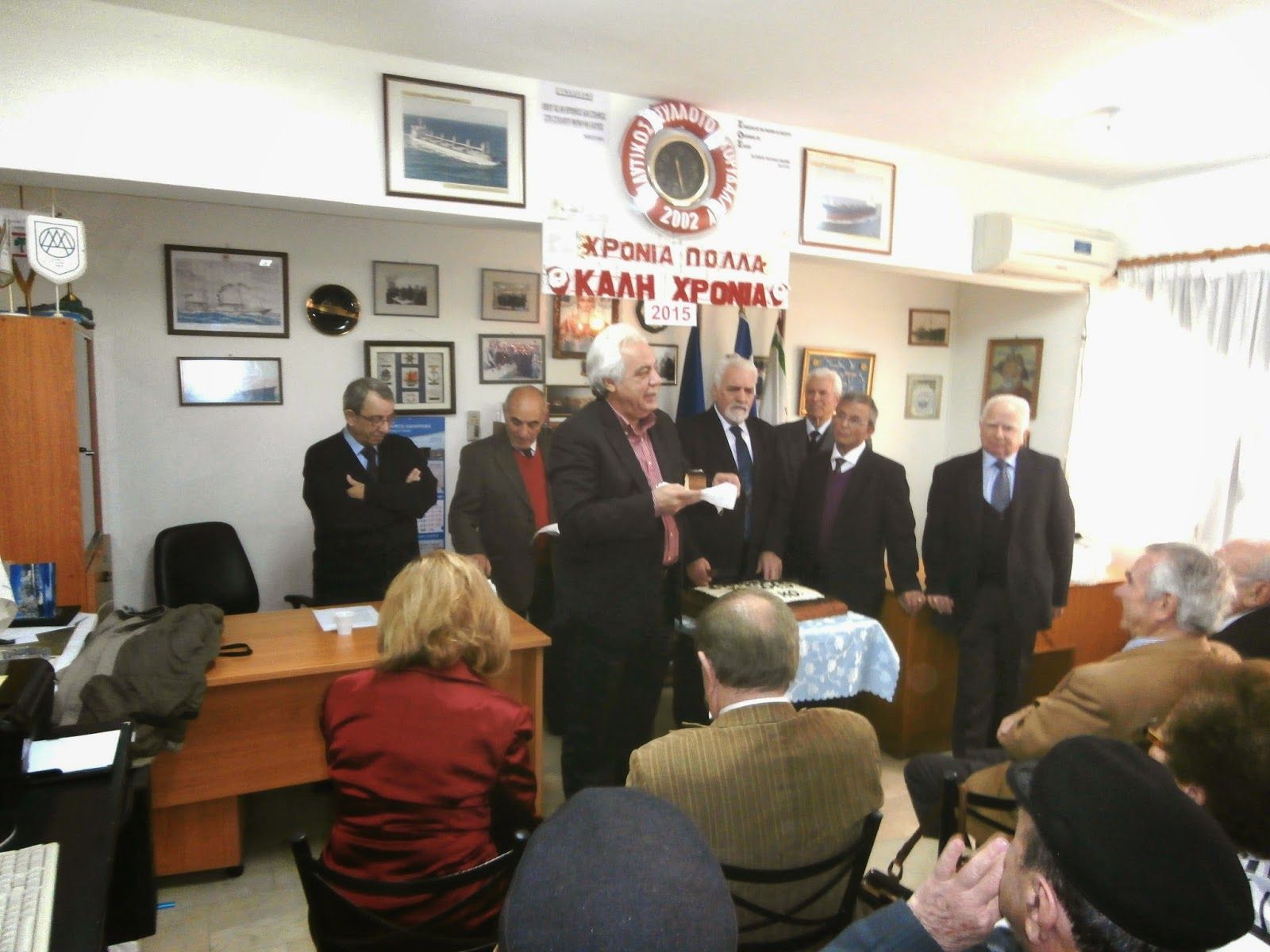 Όπως καλά γνωρίζετε ο Ελληνικός Εμπορικός Στόλος, κατέχει μια από τις υψηλότερες θέσεις της παγκόσμιας ναυτιλίας. Δυστυχώς για εμάς που τη φτιάξαμε τα νέα δεν είναι ευχάριστα. Δεν θέλω αυτή τη χαρμόσυνη ημέρα να σας στενοχωρήσω. Σταματώ εδώ. Άλλωστε, μεγάλοι είστε. Έχετε μυαλό… γνώση. Ζείτε τις άθλιες οικονομικές καταστάσεις που μας επέβαλαν έξωθεν άσπονδοι φίλοι μας …Φυσικά με μεγάλη ευθύνη των πολιτικών ταγών μας. Με μια ένσταση, «Εμείς οι Ναυτικοί – Δεν τα φάγαμε μαζί τους», «Εμάς, μας τα φάγανε».