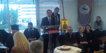 Ο Νότης Μηταράκης στην κοπή της Βασιλόπιτας του Συλλόγου «Φίλοι Οινουσσών»