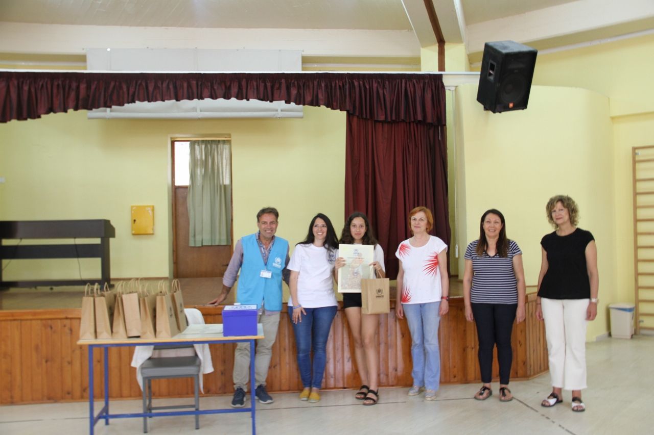 Με την υποστήριξη των εκπαιδευτικών Σοφίας Δήμου και Αικατερίνης Κατσάλα, οι μαθήτριες με τα εμπνευσμένα κείμενά τους διεκδίκησαν τη διάκριση στην κατηγορία της δημιουργικής γραφής. Το πρώτο βραβείο πήρε η Μελίνα Αποστολή που παρέλαβε μια φωτογραφική μηχανή και φιλμ ενώ αναμνηστικά διπλώματα απονεμήθηκαν σε όλες τις μαθήτριες που συμμετείχαν, από μέλη του Γραφείου της Ύπατης Αρμοστείας του ΟΗΕ για τους πρόσφυγες σε μια σεμνή τελετή στο χώρο του σχολείου μας .