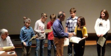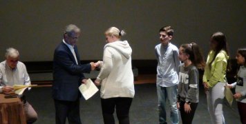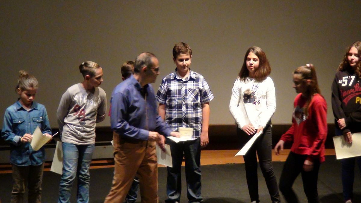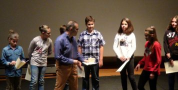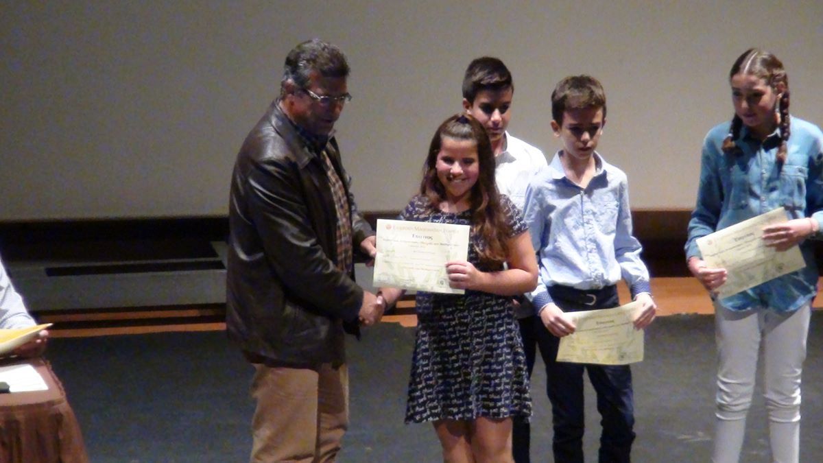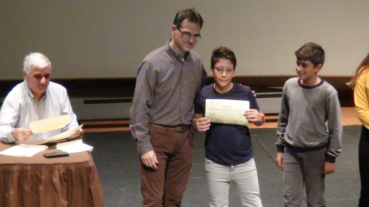 Ακολούθησαν οι βραβεύσεις, με πολλά χειροκροτήματα χαρά και χαμόγελα και τα παιδιά παρέλαβαν τα βραβεία τους από τους δασκάλους τους σε πολύ εγκάρδιο κλίμα. Ανάμεσα στις Βραβεύσεις ο Μαθηματικός Πολύδωρος Στείρος θύμισε στο κοινό ότι το ερχόμενο Σάββατο 9 Νοεμβρίου διεξάγεται ο Μαθηματικός Διαγωνισμός ''ΘΑΛΗΣ'' για μαθητές Γυμνασίου, τόνισε ότι αξία έχει η συμμετοχή, η ενασχόληση και η προσπάθεια που οφελούν τα παιδιά και παρότρυνε αγόρια και κορίτσια να συμμετέχουν...γιατί όπως είπε χαρακτηριστικά ''αν ασχοληθείς σοβαρά και ήρεμα με ένα μαθηματικό πρόβλημα για δέκα λεπτά...ακόμα κι αν δεν το λύσεις...όταν ο δάσκαλος θα σου δείξει τη λύση αυτή θα αποτυπωθεί για πάντα στο μυαλό σου''.