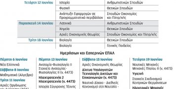 Ειδικότερα, όπως ανακοίνωσε το υπ. Παιδείας, για τους υποψηφίους ημερήσιων και εσπερινών ΓΕΛ οι εξετάσεις θα ολοκληρωθούν την Τρίτη 18/6 (με τα μαθήματα της Βιολογίας Γεν. Παιδείας και Προσανατολισμού). Σε ό,τι αφορά τους αποφοίτους των ΕΠΑΛ, οι Πανελλαδικές θα ολοκληρωθούν την Πέμπτη 20/6 με μαθήματα ειδικότητας.