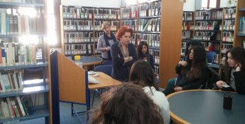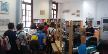 Η επίσκεψη της ομάδας των 13 μαθητών και μαθητριών και των δύο συνοδών καθηγητριών του Γυμνασίου - Λ.Τ. Ψαρών στις 16 Απριλίου ξεκίνησε με ξενάγηση στο Μιχάλειο κτίριο και παρουσίαση της ιστορίας του και των χρήσεών του στο πέρασμα των χρόνων και συνεχίστηκε στη βιβλιοθήκη, πρώτα στο χώρο δανεισμού βιβλίων όπου οι μαθητές και οι μαθήτριες ενημερώθηκαν για τη λειτουργία της από την Υπεύθυνη της Βιβλιοθήκης κ. Στ. Πουλάκη. Στο σπουδαστήριο του 1ου ορόφου η Κοσμήτορας της Σχολής Επιστημών της Διοίκησης Καθηγήτρια Μαρία Λεκάκου τους ενημέρωσε για τα Τμήματα της Πανεπιστημιακής Μονάδας Χίου και τις σπουδές που προσφέρουν και στη συζήτηση που ακολούθησε οι μαθητές και οι μαθήτριες μοιράστηκαν μαζί της τα επαγγελματικά τους όνειρα.