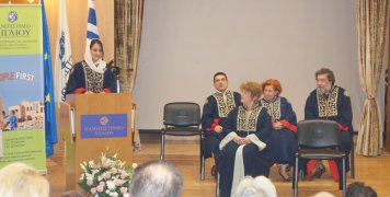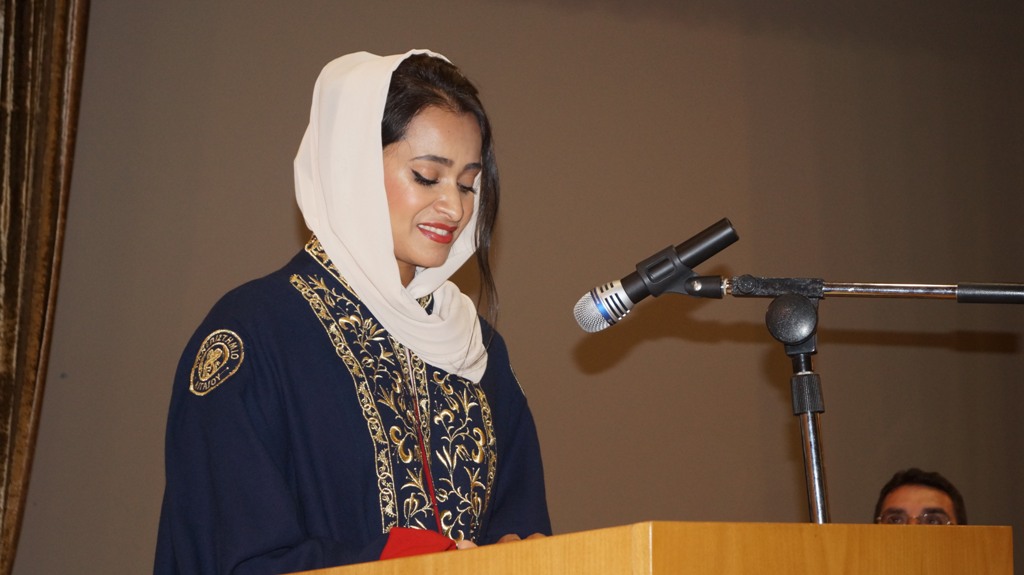 Η πρύτανης του Πανεπιστήμιου Αιγαίου Χρυσή Βιτσιλάκη αναφέρθηκε στην προσωπικότητα της κ.Αϊσα Αλχαμελί, τονίζοντας ότι έδειξε από νωρίς τη σχέση της με ένα από τους δυναμικότερους τομείς του τουρισμού που είναι οι αερομεταφορές, ενώ είναι η πρώτη γυναίκα πιλότος στα Αραβικά Εμιράτα.