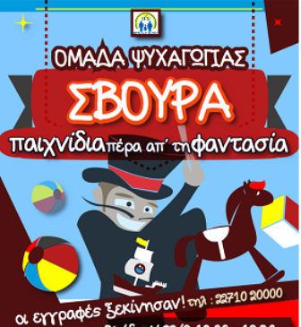 Όπως ενημερώνει το Κέντρο Παιδιού και Εφήβου (ΚΠΕ) στις 22 και 24 Σεπτέμβρη ξεκινά τη δράση της για τρίτη χρονιά η Ομάδα Ψυχαγωγίας «Σβούρα», με τίτλο για τον πρώτο κύκλο: «Παιχνίδια πέρα απ’ τη φαντασία»