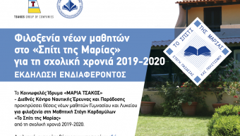 Η Μαθητική Στέγη Καρδαμύλων «το Σπίτι της Μαρίας - Στέγη Παιδείας και Πολιτισμού» ανακοινώνει ότι θα δεχθεί αιτήσεις για τη φιλοξενία αρρένων μαθητών οι οποίοι θα φοιτήσουν κατά το σχολικό έτος 2014-15 στην Γ’ Γυμνασίου, Α’ και Β’ Λυκείου. Βασική προϋπόθεση το σχολικό έτος 2013-2014 η γενική βαθμολογία του μαθητή να είναι μεγαλύτερη του 16.
