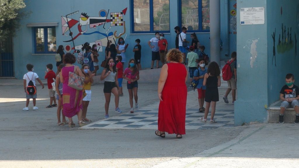 Το πρώτο κουδούνι χτύπησε και οι μαθητές φορώντας τις μάσκες τους, μπήκαν στις σχολικές αίθουσες, ενώ οι γονείς και κηδεμόνες παρέμειναν έξω από τα σχολεία.