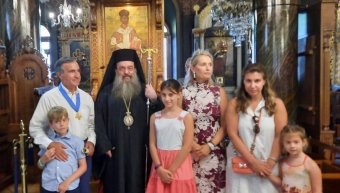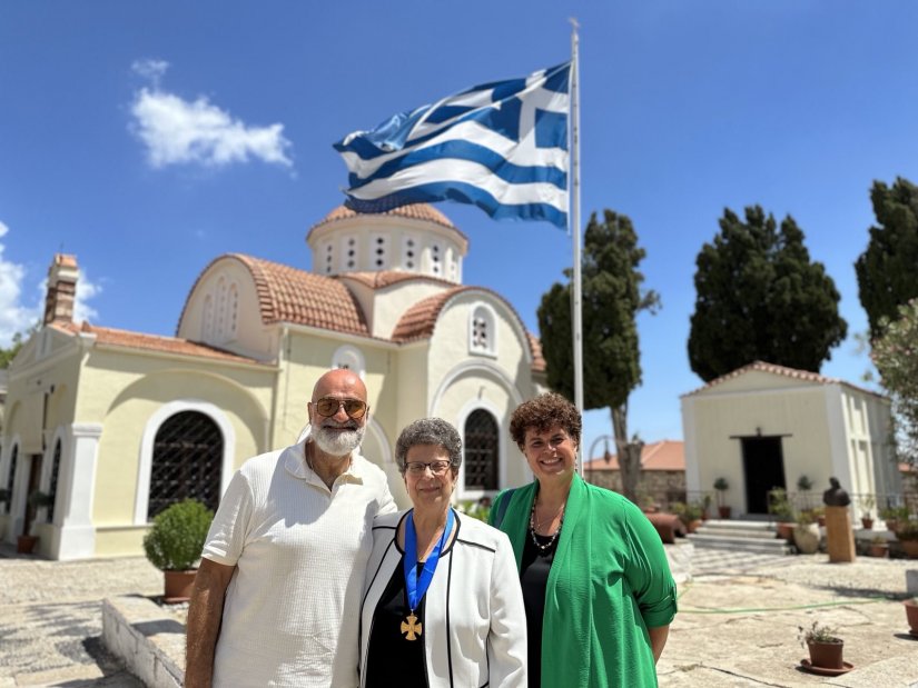 Στην πρόσφατη Αρχιερατική Λειτουργία στον Άγιο Μηνά, προς τιμήν των Ομογενών μας ο Σεβασμιώτατος Μητροπολίτης Χίου, Ψαρών και Οινουσσών κ. Μάρκος απένειμε τιμητικά τον Σταυρό του Αγίου Ισιδώρου στην συμπατριώτισσα μας Αθηνά Κρομμύδα - Τσώκου, Προέδρου του Ανωτάτου Συμβουλίου Ελληνικής Παιδείας της Αρχιεπισκοπής Αμερικής.