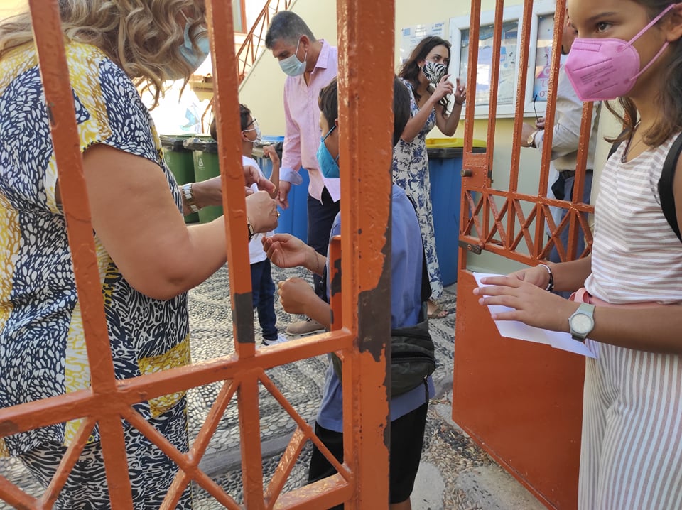 Σήμερα, ημέρα αγιασμού, η προσέλευση των μαθητών έγινε κανονικά και οι εκπαιδευτικοί -όπως φαίνεται και στις φωτογραφίες που επισυνάπτονται από το 11ο δημοτικό σχολείο Χίου και το 1ο Γυμνάσιο- βρίσκονταν στην είσοδο των σχολείων για να ελέγξουν τα πιστοποιητικά των παιδιών, είτε πρόκειται για αποτελέσματα self test, είτε για πιστοποιητικά εμβολιασμού ή νόσησης.