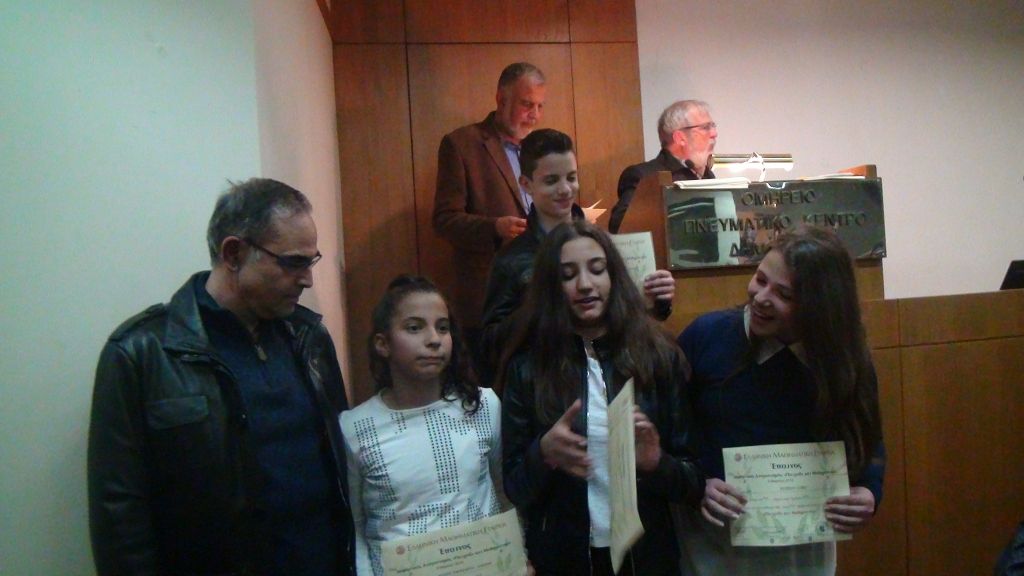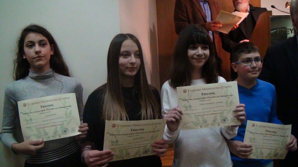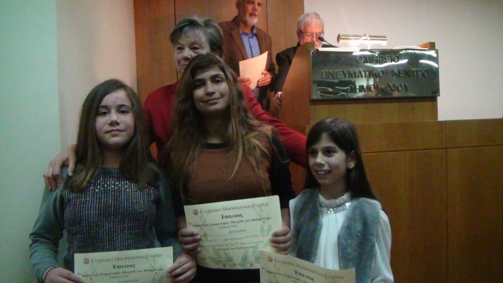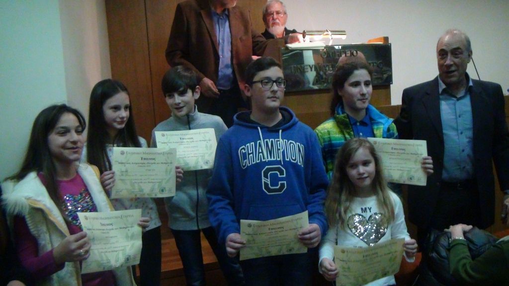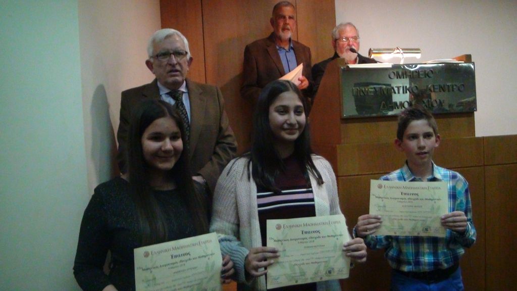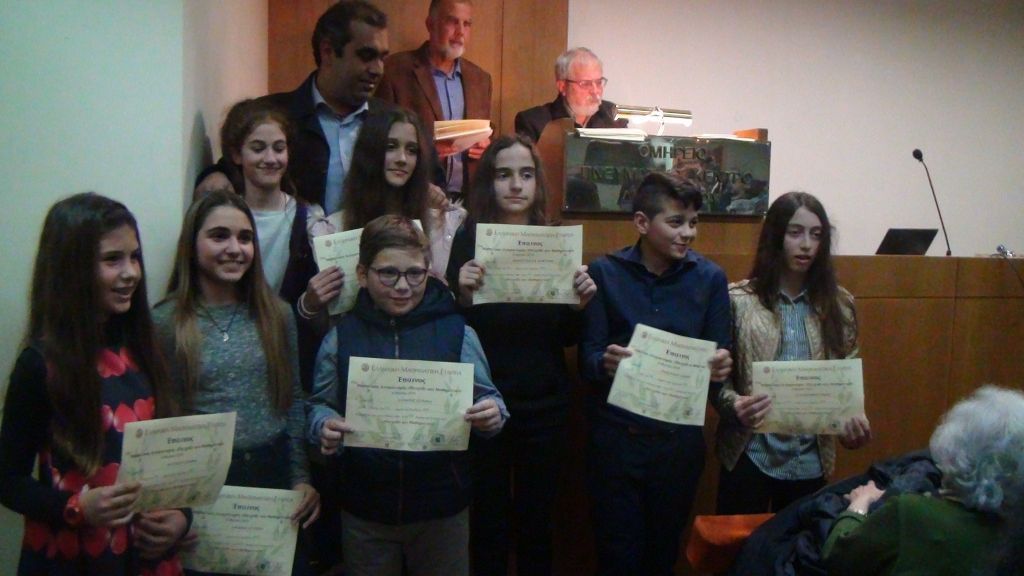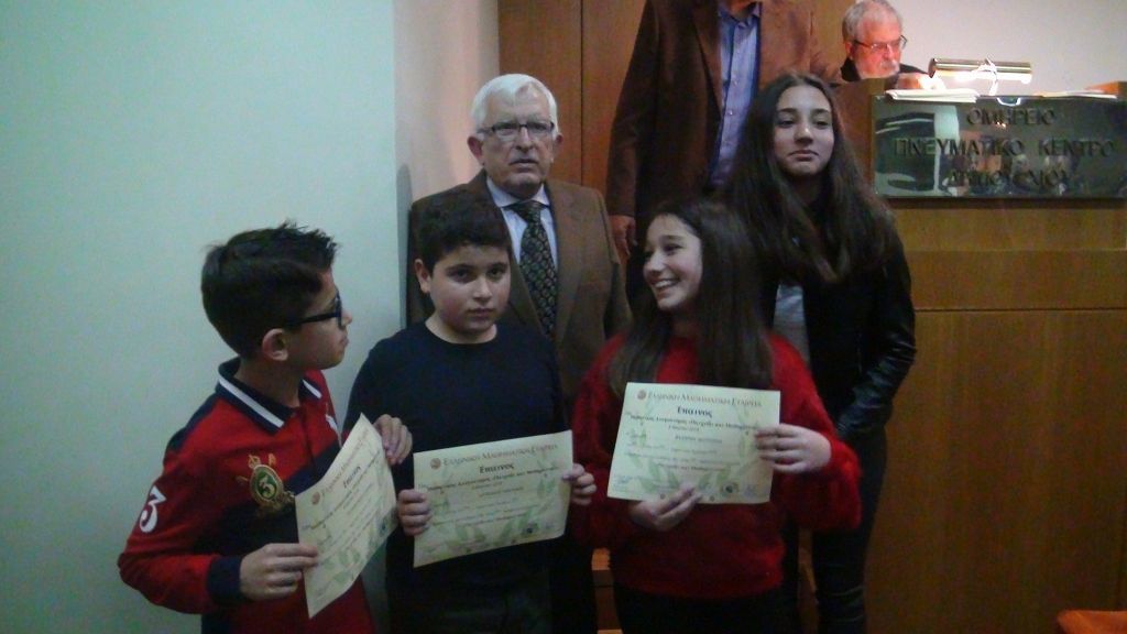 Ξεχείλισε η αίθουσα συνεδρίων του Ομηρείου Πνευματικού Κέντρου παιδιά, γονείς, γιαγιάδες και παππούδες, δασκάλους και φίλους των διακριθέντων μαθητών του καθιερωμένου ετήσιου διαγωνισμού της Μαθηματικής Εταιρείας ''μαθηματικά και παιχνίδι'', στις επτά το βράδυ του Σαββάτου 9 Μαρτίου 2019, στην εκδήλωση της απονομής των βραβείων σε 112 μαθητές της Πέμπτης και της Έκτης Τάξης Δημοτικού, απ' όλα τα Σχολεία της Χίου. Η εξαιρετικά μεγάλη προσέλευση γονέων και παππούδων μαζί με τα παιδιά που τιμήθηκαν για τις μαθηματικές επιδόσεις τους, δείχνει όπως επεσήμανε ο Πρόεδρος του Χιακού παραρτήματος της Ελληνικής Μαθηματικής Εταιρείας Γιάννης Ράλλης στο χαιρετισμό του, το μεγάλο ενδιαφέρον που τρέφει η Χιακή κοινωνία για την εκπαίδευση των παιδιών της. Έτσι λοιπόν σίγουρα θα έπιασε τόπο και η πολύ χρήσιμη και εμπνευσμένη ομιλία πάνω στα θέματα της Επαίδευσης και της μάθησης των παιδιών, που πολύ εύστοχα τοποθετηθηκε στην παρούσα εκδήλωση, του τ. Καθηγητή του Παιδαγωγικού τμήματος του Πανεπιστημίου Μακεδονίας Αδαμάντιου Παπασταμάτη, με θέμα ''Η αριστεία στην Εκπαίδευση. Μια παιδαγωγική προσέγγιση'' που έθεσε προβληματισμούς και ζητήματα που αφορούν την πραγματική και ουσιαστική μόρφωση των παιδιών, σε αντιδιαστολή με την κενή και φαινομένική γνώση και πρόοδο.