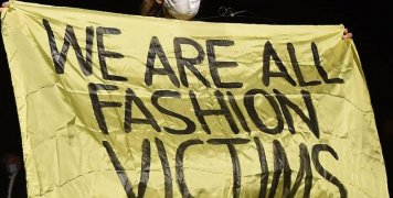 Μια γυναίκα που κρατούσε ένα πλακάτ με το σύνθημα «Είμαστε όλοι θύματα της μόδας (fashion victims)» κατάφερε να ανέβει στην...