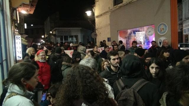 Το συλλαλητήριο ξεκίνησε από την πλατεία Νικόλαου Πλαστήρα, όπου μέλος της ΛΑΘΡΑ(;) κατήγγειλε την κυβερνητική πολιτική, που έχει εγκλωβίσει τους πρόσφυγες- μετανάστες στο νησί, μέσα σε άθλιες συνθήκες διαβίωσης.