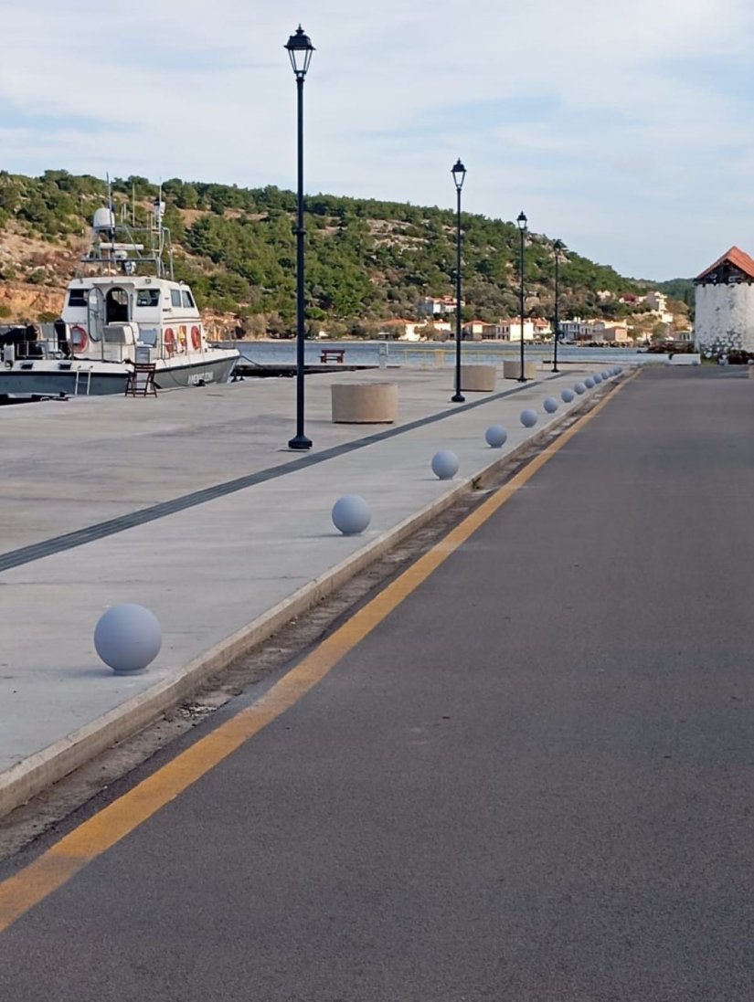 Τοποθετήθηκαν οι τσιμέντινες μπάλες που φαίνονται στην φωτογραφία, ενώ πέντε κούγκια, που υπάρχουν εκεί επενδύονται με Λαγκαδούσικη πέτρα.