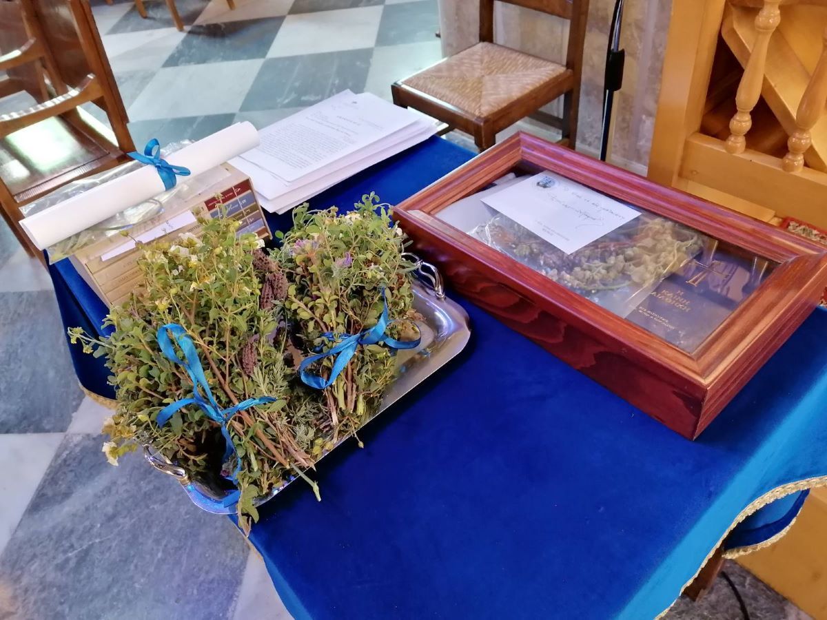 Ὁ Σεβασμιώτατος Χίου ἐτέλεσε μετά τοῦ Ἱερολογιωτάτου Ἀρχιδιακόνου κ. Ἀποστόλου Λάρδα δέησιν καί ἐν συνεχείᾳ προσεφώνησε τόν Στρατηγόν μέ λόγον μεστόν θεολογικῶν, ἱστορικῶν, φιλολογικῶν καί ἐθνικῶν μηνυμάτων καί τοῦ προσέφερεν ὡς δῶρον μίαν Καινήν Διαθήκην (ἡ Πίστις μας), μίαν Ἑλληνικήν Σημαίαν (ἡ Πατρίδα μας) καί «λίγα χορτάρια» ἀπ’ «τῶν Ψαρῶν τήν ὁλόμαυρη ράχη», καθώς καί μίαν ἀνθοδέσμην ἀπό φυτά τῆς νήσου Παναγιᾶς τῶν Οἰνουσσῶν πού ἀποτελεῖ τό ἀνατολικόν σύνορον τῆς Ἑλλάδος καί τῆς Εὐρωπαϊκῆς Ἑνώσεως.