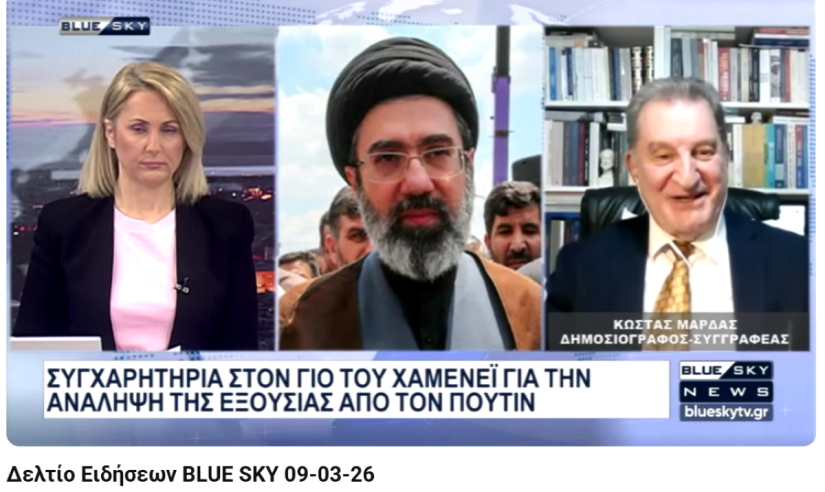 «Έχει μπλέξει ο …Αγιατολάχ Τραμπ», είπε ο Κώστας Μαρδάς , μιλώντας τη Δευτέρα στο δελτίο ειδήσεων του BLUE SKY με την Λία Λάππα.