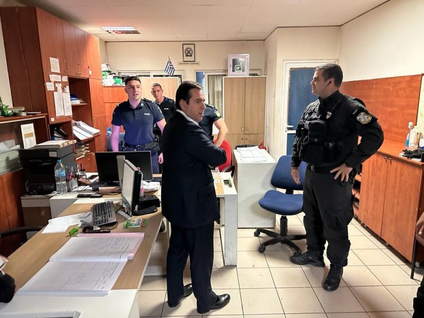 Από τα... μεσάνυχτα έπιασε δουλειά ο υπουργός Προστασίας του πολίτη, Βουλευτής Χίου Νότης Μηταράκης, επισκεπτόμενος αιφνιδίως το ΑΤ Ομόνοιας.