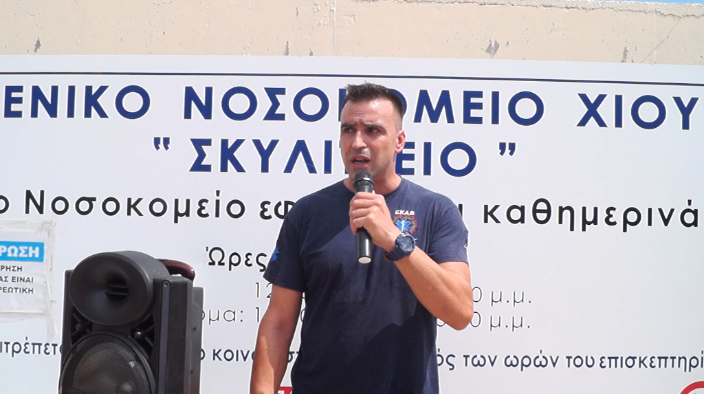 "Από τον καναπέ δεν λύνεται τίποτα, σήμερα είναι συγγενής μου αύριο δικός σας συγγενής", είπε χαρακτηριστικά ο Γιάννης Μαλαφής, Πρόεδρος του Συλλόγου Νοσοκομειακών Γιατρών Χίου, ενώ ο αναισθησιολόγος Παντελής Στεφάνου, σημείωσε ότι η υποστελέχωση του ΕΚΑΒ συνδέεται με το κυβερνητικό σχέδιο ιδιωτικοποίησης του φορέα, μόνο που κάτι τέτοιο ειδικά στα νησιά δεν μπορεί να γίνει.
