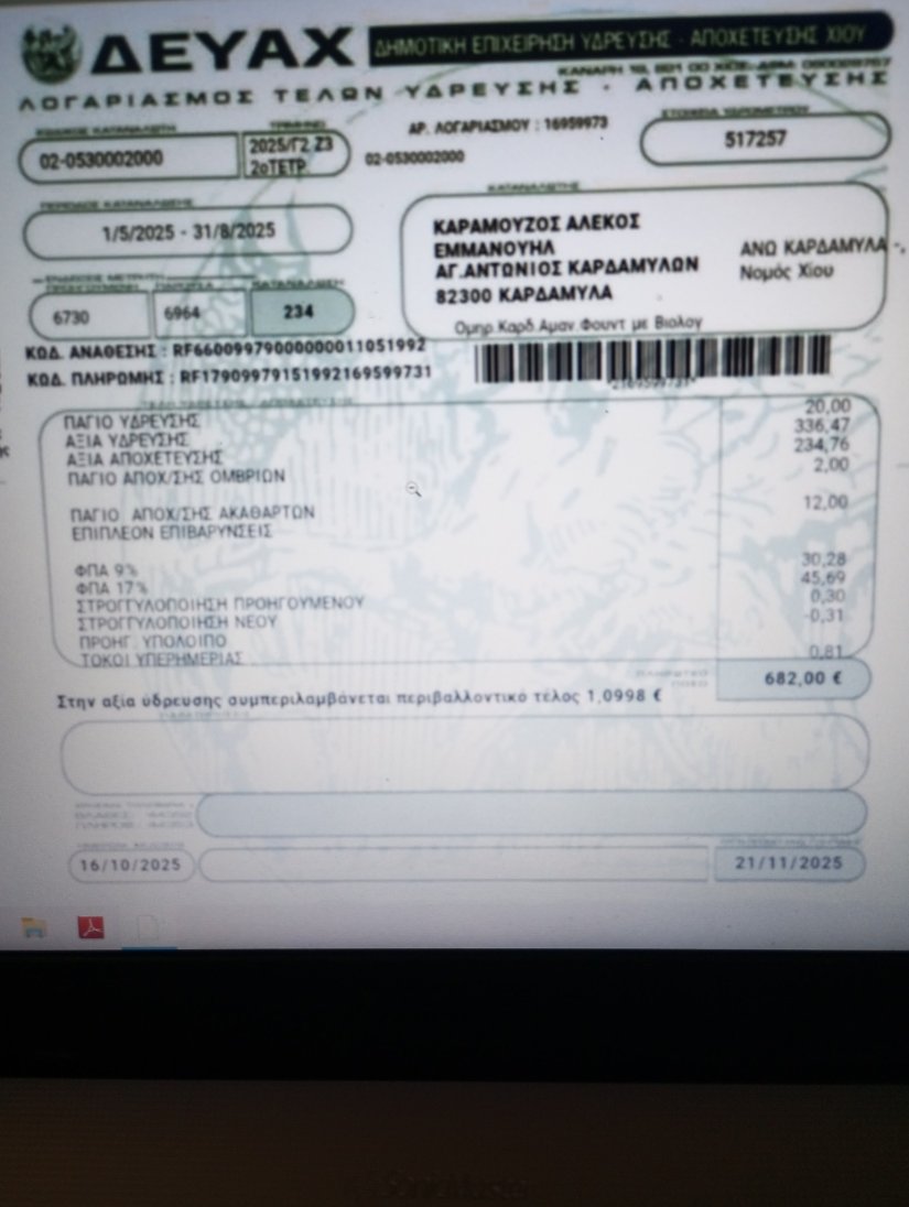 Εκανα σύγκριση πολλών λογαριασμών νερού πανελλαδικά και διαπίστωσα ότι τα Καρδάμυλα βρίσκονται στους ψηλότερους δείκτες.