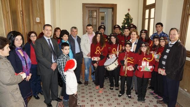 Αμέσως μετά στο γραφείο της στην Περιφέρεια άκουσε τα κάλαντα της Πρωτοχρονιάς από τη Φιλαρμονική Μπάντα του Δήμου Λέσβου.
