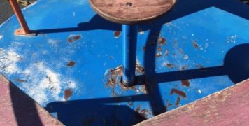 Ο χώρος που απευθύνεται σε παιδιά μέχρι 7 ετών έχει σε αρκετά σημεία του δαπέδου τρύπες και όργανα σε αυτόν είναι σκουριασμένα.