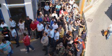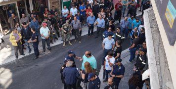 Δεκάδες Αστυνομικοί, Λιμενικοί και Πυροσβέστες φωνάζοντας συνθήματα, που καταδίκαζαν την κυβερνητική πολιτική και το μνημόνιο, κατευθύνθηκαν στα γραφεία των δύο τοπικών Βουλευτών, με πορεία στους δρόμους της αγοράς, χειροκροτούμενοι από τον κόσμο, που με λίγη περιέργεια τους παρακολουθούσε από τα καταστήματα.
