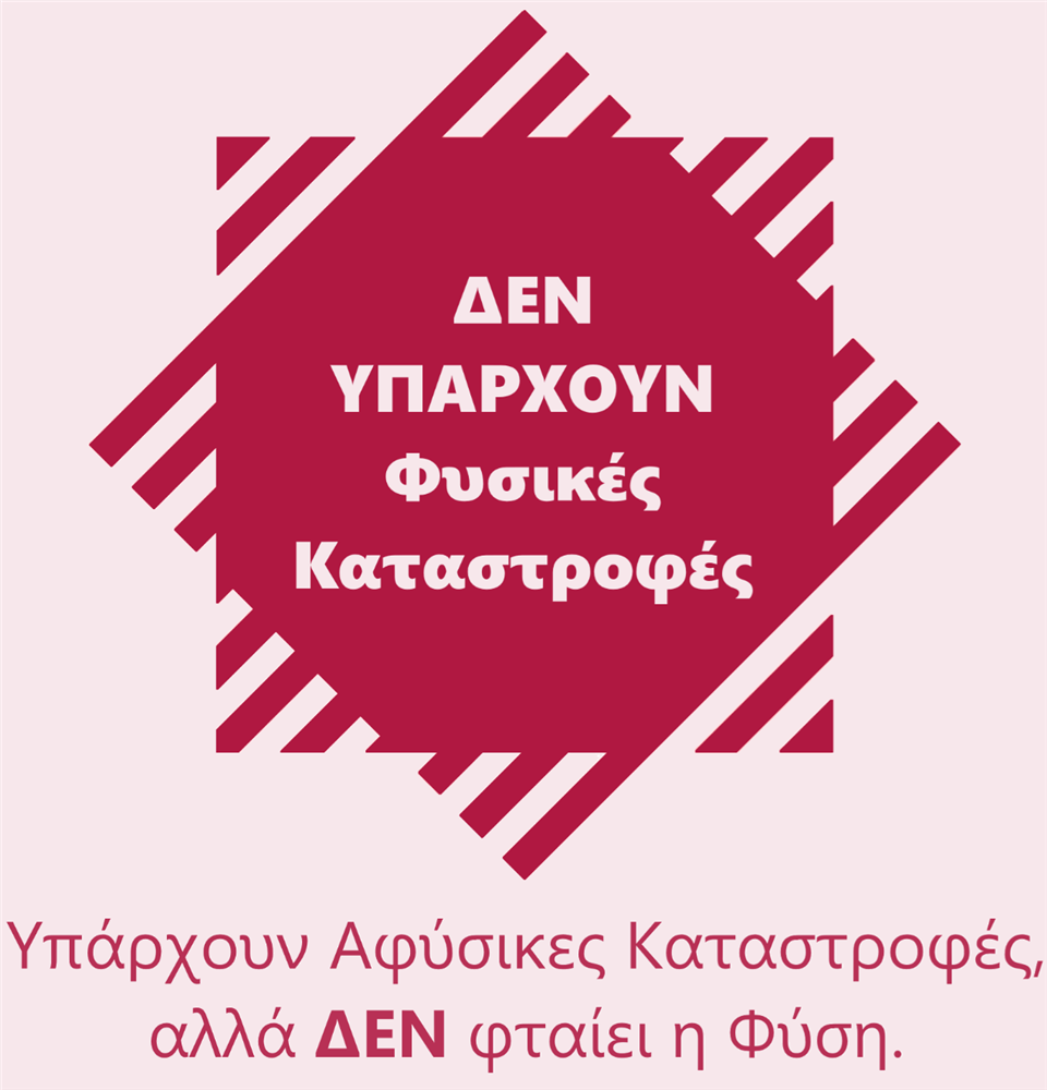 Το Ελληνικό Ινστιτούτο Διαχείρισης Κρίσεων και Καταστροφών, εξ αρχής ξεκαθάρισε την θέση του· ότι, αποδέχεται ότι, ΔΕΝ υπάρχουν Φυσικές Καταστροφές. Υπάρχουν Αφύσικες Καταστροφές, αλλά ΔΕΝ φταίει η Φύση. Από το έτος 2015, αυτή είναι η επίσημη θέση της Επιστήμης των Καταστροφών.