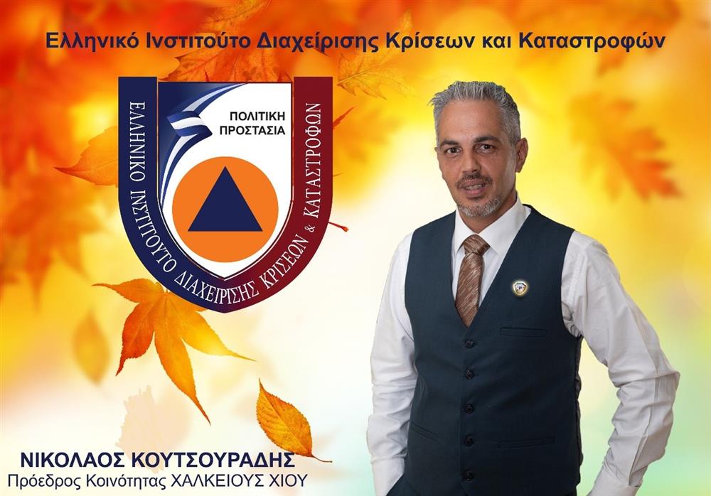 Ο Πρόεδρος της Κοινότητας Χαλκειούς Χίου, κύριος Νικόλαος Κουτσουράδης, ζήτησε επίμονα από το Ελληνικό Ινστιτούτο Διαχείρισης Κρίσεων και Καταστροφών, να εκπαιδευτεί σε βάθος και σε επίπεδο, που να του επιτρέπει να αντιλαμβάνεται τις επικινδυνότητες και τις απειλές γύρω από την κοινότητά του και να είναι σε θέση να προλαμβάνει, δηλαδή, να προβλέπει και να προνοεί, στο μέτρο του δυνατού, για την άρση ή των περιορισμό των επικινδυνοτήτων και των απειλών. Έτσι, ξεκίνησε μια ιδιαίτερα χρονοβόρα, κοπιαστική και πολυέξοδη εκπαιδευτική διαδικασία, η οποία όσο προχωρούσε, τόσο δημιουργούσε αίσθημα ανασφάλειας και φόβου, από την έλλειψη γνώσης. Παράλληλα, δημιουργούσε την έκπληξη και την ευτυχία της αποκάλυψης της γνώσης, της αληθινής γνώσης, από τους πλέον ειδικούς του πεδίου της πολιτικής προστασίας.