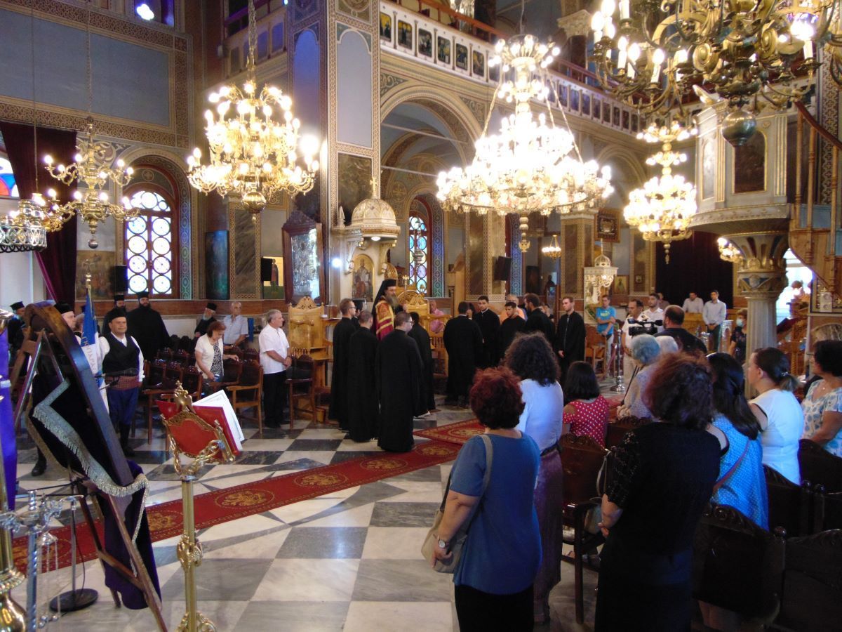 Οι καμπάνες της Μητρόπολης Χίου χτυπούσαν πένθιμα ήδη στις επτά το απόγευμα και ακούγονταν στην Απλωταριά και σε όλη την αγορά της πόλης που ήταν ανοιχτή, καλώντας τους πιστούς όπως και σε όλες τις άλλες πόλεις της Ελλάδος, στη σημερινή Θεία Λειτουργία που ''είναι αντίλαλος'' όπως είπε ο Σεβασμιώτατος Μητροπολίτης Χίου Ψαρων και Οινουσσών κ.κ.Μάρκος ''από τα 45 σήμαντρα και τις 62 καμπάνες της Αγιάς Σοφιάς''...