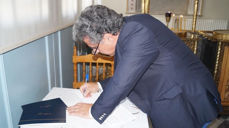 Πλήθος στελεχών της Ν.Δ. συμμετείχαν το μεσημέρι στην επιμνημόσυνη δέηση της ΝΟΔΕ Χίου της Ν. Δ. για τον εκλιπόντα Πρωθυπουργό Κωνσταντίνο Μητσοτάκη. Για την πολιτική του πορεία μίλησαν στην ΑΛΗΘΕΙΑ ΤV, ο Πρόεδρος της ΝΟΔΕ Πρόδρομος Μανωλάκης και τα στελέχη του Κόμματος Σταύρος Μιχαηλίδης και Γιώργης Κλιαμενάκης. Αρκετοί υπέγραψαν βιβλίο συλλυπητηρίων, που υπήρχε στην είσοδο του Μητροπολιτικού Ναού.