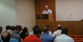 ''Eίμαστε εδώ για να δώσουμε μάχες, να λύσουμε προβλήματα και να δώσουμε λύσεις'' τόνισε ο Δήμαρχος Χίου Σταμάτης Κάρματζης προς τους Προέδρους των Τοπικών Συμβουλίων των Δημοτικών Διαμερισμάτων του Δήμου Χίου, στη συνάντηση-σύσκεψη-ενημέρωση διοικητικής δράσης που πραγματοποιήθηκε στο Ομήρειο Πνευματικό Κέντρο στις 6.00 μ.μ. της Τρίτης 1 Οκτωβρίου 2019.