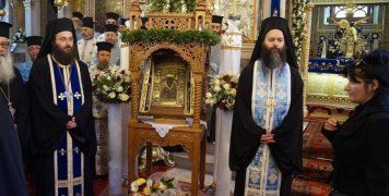 Μέσα από μια συγκινητική ομιλία του Μητροπολίτη Χίου κ. Μάρκου, παρουσία των Μητροπολιτών Καρπενησίου κ. Γεωργίου και Άρτης κ. Καλλίνικου, των Βουλευτών Ανδρ. Μιχαηλίδη, που εκπροσωπούσε και τον Πρόεδρο της Βουλής των Ελλήνων και Ν. Μηταράκη, του Αντιπεριφερειάρχη Χίου, του Δημάρχου, του Στρατιωτικού Διοικητή και πολύ κόσμου, έγινε σήμερα η υποδοχή της εικόνας της Παναγίας Σουμελά, που κατά την παράδοση αγιογραφήθηκε από τον Ευαγγελιστή Λουκά, στον Ιερό Μητροπολιτικό Ναό Χίου. Ο Μητροπολίτης Χίου επεσήμανε πέρα από το θελογικό μέρος της παρουσίας της εικόνας τη συμβολική παρουσία της από το όρος Βέρμιο της Βέροιας, όπου φιλοξενείται και φυλάσσεται στα καταγάλανα νερά του Αιγαίου και στην ελεύθερη εδώ και 104 χρόνια Χίο, ευχόμενος στην εικόνα Καλή Πατρίδα, στον προορισμό της στο όρος Σουμελά του Πόντου. Μετά το πέρας της Δοξολογίας ο Μητροπολίτης απένειμε τον Σταυρό του Αγίου Ισιδώρου στον Πρόεδρο του Ιδρύματος Παναγίας Σουμελά, Γιώργο Τανιμανίδη, ο οποίος με τη σειρά του δώρισε στον Μητροπολίτη και δι’ αυτού στον Μητροπολιτικό Ναό, ένα αντίγραφο της ιερής εικόνας της Παναγίας των Ποντίων.