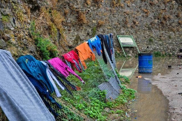 Ανάμεσα στις σκηνές εκβάλει αγωγός ο οποίος είναι ενεργός και φαίνεται να μεταφέρει ακάθαρτα λύματα στη θάλασσα. Οι σκηνές βρίσκονται γύρω από τον αγωγό με τις κοντινότερες από αυτές σε απόσταση λίγων μέτρων.