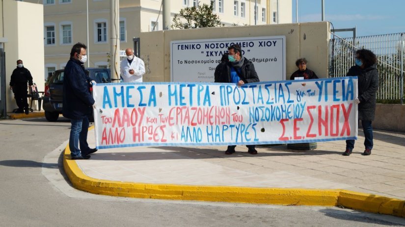 Οι εργαζόμενοι του Νοσοκομείου της Χίου, είπαν μπορεί να είμαστε στη πρώτη γραμμή, δεν είμαστε όμως αναλώσιμοι, θέλουμε να υπηρετήσουμε και αύριο τις ανάγκες του λαού σε δημόσια δωρεάν υγεία. Δεν επιδιώκουμε να γίνουμε ήρωες με την δουλειά μας, θέλουμε να προσφέρουμε ότι καλύτερο μπορούμε.