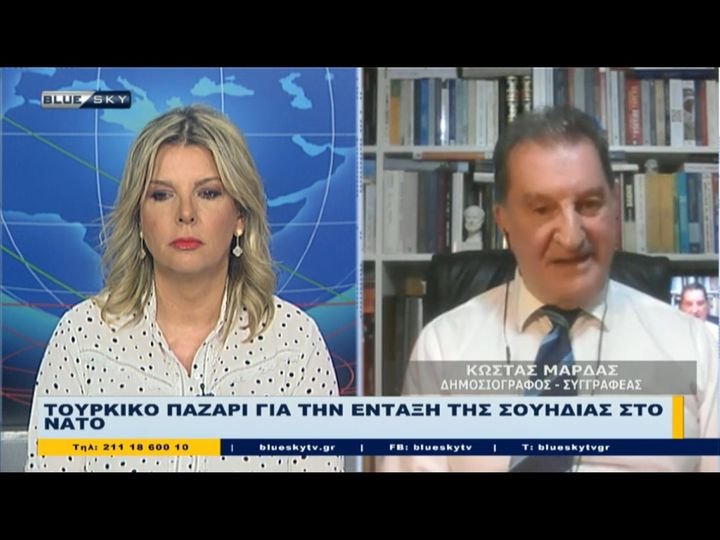 “O Ερντογάν πουλάει τρέλα… Και τους γλεντάει, καθώς νοιώθει ισχυρός ως πολιτικός και… θρησκευτικός ηγέτης με το 52% », σχολίασε χθες ο Κώστας Μαρδάς στο δελτίο ειδήσεων του BLUE SKY με τη Λίνα Κλείτου, αναφερόμενος στην νικηφόρα -τελικά- απαίτηση του Τούρκου Προέδρου να ενταχθεί η Τουρκία στην Ευρωπαϊκή Ένωση για να άρει το βέτο στην ένταξη της Σουηδίας στο ΝΑΤΟ, που ήταν το βασικό θέμα της συνόδου κορυφής η οποία ξεκίνησε χθες και λήγει σήμερα στο Βίλνιους της Λιθουανίας.