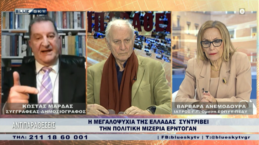 «Ο σεισμός στην Τουρκία θρυμμάτισε και τον μύθο του Ερντογάν…», εκτίμησε ο Κώστας Μαρδάς, μιλώντας στην κυριακάτικη εκπομπή του Κώστα Χαρδαβέλλα στο Blue Sky.